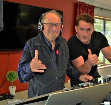 Residents at Ultimate Care Cambridge Oakdale rest-home started Anzac week slightly early last Monday with an hour or so of music across the decades. Local DJ Matt Hicks offered his services for free to bring residents a beat-filled selection that included music from the 40s, 50s and 60s. It was his first ‘gig’ at a rest-home, and he was delighted with the response – those who couldn’t get up and dance showed their appreciation by clapping and tapping their toes. One of them, Roger Meakin, decided the time was right to learn the art of the DJ and spent most of the time manning the console under Matt’s watchful eye.