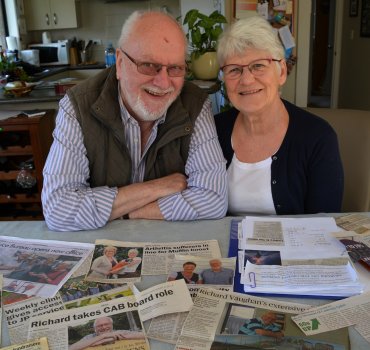 UK-born Richard has been here since 2006. The couple met soon afterwards via what he calls a “golfing for idiots” day at the Cambridge Golf Club, followed by lengthy walks with their respective dogs. They soon became a team, with both taking on community roles suiting their interests. Richard has been involved with the Cambridge Chamber of Commerce, the Young Enterprise scheme through both high schools, Age Concern, the Safer Communities Trust, Cambridge Community House and has driven the St John Health Shuttle. He joined the Citizens Advice Bureau in 2006, rising to become chairman of the Cambridge branch and becoming vice-president of CAB New Zealand for two years. He was also in the news for his extensive model railway set-up.