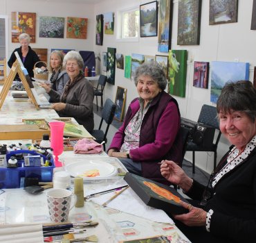 Tucked away in a small building above Te Ko Utu Lake a group of artists gather each Monday, Tuesday and Wednesday morning for a few hours of creative chatter, with works of art to show for it at the end.