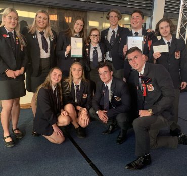 PHOTO: St Peter’s business teams Get Heated and Hurban Oasis were all smiles after receiving their awards at the Waikato King Country Young Enterprise Scheme Awards, pictured afterwards at their graduation dinner held on the same night.