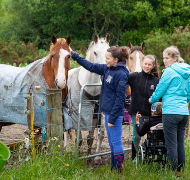 Although horse riding games for the public had to be cancelled due to the weather, children still got to venture out into the paddocks for some time with the horses, feeding them carrots in the gaps between showers.