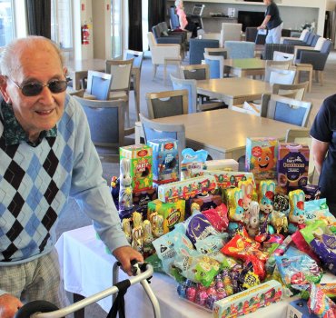 Other residents and staff from the Bupa St Kilda village pitched in, but Pierre did a lot of the work himself, purchasing hundreds of Easter eggs from The Warehouse in Cambridge.