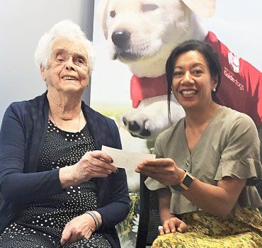 Sales from the book, entitled Bright Sunlight Dark Shadow, saw $1000 handed over Blind and Low Vision NZ, and $1500 to Guide Dog Services in Hamilton last week. Judy and her long-standing guide dog Utah were accompanied to the handover by Samantha (Sam) Cutler, the personal historian with Forget-Me-Not Life Stories who helped put Judy’s extraordinary life story into print.