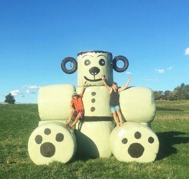The couple and their family have created a giant teddy bear out of nine silage bales on their Maungatautari Rd property.