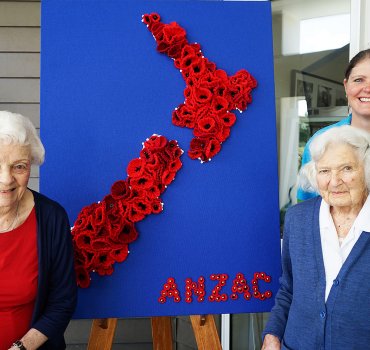 Resident May Dodds, along with volunteer Jude Bowen, was inspired by resident Marjorie Fromm after she mentioned that the Heritage Museum in Morrinsville has a knitted poppy display that comes out each Anzac, bearing the names of local servicemen who served in the wars.