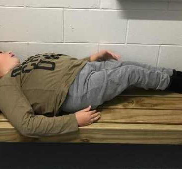 Diane Belcher says her son Daniel, who has spina bifida and severe kyphoscoliosis (curvature of the spine), had to change on the disability room’s concrete floor because of a lack of space and equipment.
