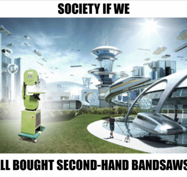So it’s a win win win; for me, the seller, and the planet: I am not going to buy a new band saw which will have been made in China from all new raw materials and then shipped to NZ, thus expanding its already considerable carbon footprint. No, the saw I have bought was made in New Zealand and it has already been owned and used for many years by its first owner. It looks like a good quality machine and so I hope to use it myself for several years to come.