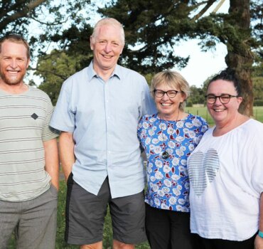 Greg Johnston with his lifesavers – wife Maree, son Matt (left) and nurse Carolyn Wallis (right), who want to highlight the importance of knowing how to do CPR.