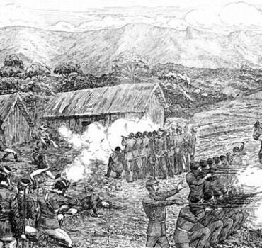 At the time of the controversial raid at Rangiaowhia 150 years ago, this illustration was presented under the headline “The defenders of New Zealand”.