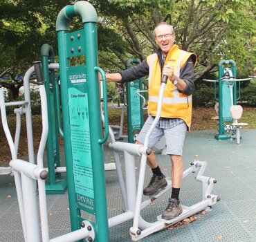 Working out: Waipā playground assets officer Paul van der Hoek on one of the fitness park machines in Cambridge.