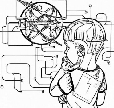 I asked DAL·E-2 to do a ‘line sketch’ of the concept “A boy surveys his future and it’s full of AI”