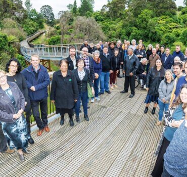 The boardwalk takes users over one of Hamilton’s oldest gully systems where pekapeka – the long-tailed bat – roost.