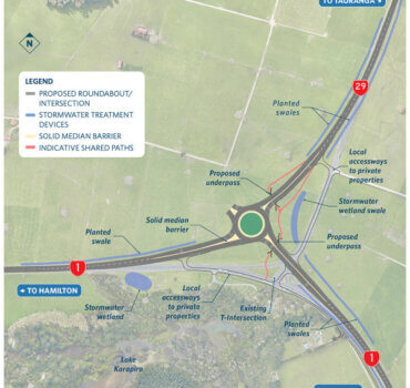 The new roundabout will provide for a connection with the Waikato Expressway when it is extended further south.