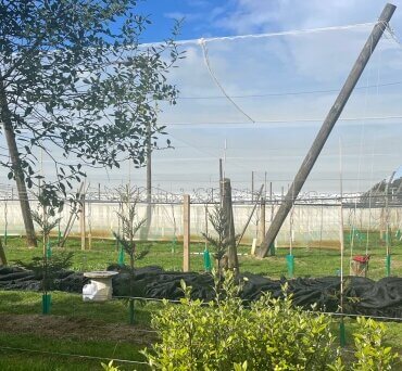 Black side netting waiting to be added to the kiwifruit structures on the eastern boundary less than eight metres from the Jennings’ boundary. Photo: Supplied.
