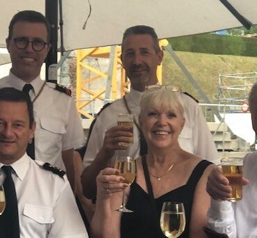 Russ Rimmington and wife Edwina pictured with the Menin Gate buglers.
