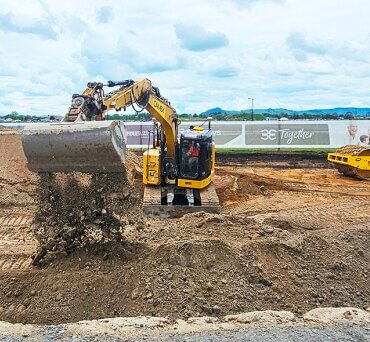 Earthworks are largely completed for the second stage of Bridleways with a central roundabout, collector roads, terminal pumpstation and swales all under construction.