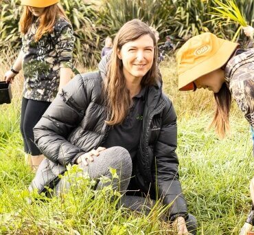 Bexie Towle, with a young team, pictured on one of the many planting days around the Mangapiko Stream.