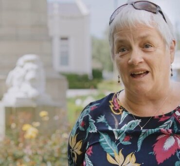 Mary Anne Gill features in a New Zealand Blood Service video announcing the end of the mad cow disease ban. Photo: NZ Blood Service.