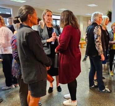 Waipa mayor Susan O’Regan, left, and deputy mayor Liz Stolwyk, right, at the Cambridge Connections meeting. Photo: Mary Anne Gill.