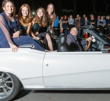 Arriving in style (from left) Annelise Bertrand, Eva McKeown, Maddi Bull and Bianca Winstanley-Mounsey. Photo – KeyImagery Photography.
