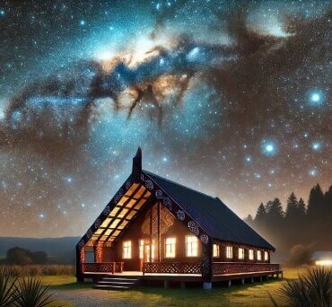 A traditional Maori meeting house under a starlit sky. Photo: Matariki.co.nz