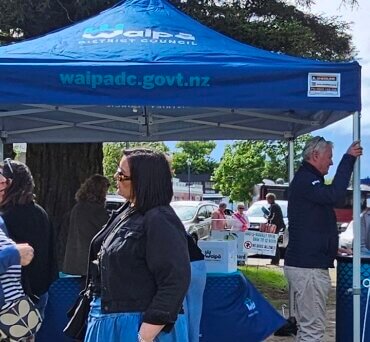 Waipa District Council’s Ahu Ake stand at the Cambridge Farmers’ Market. Photo: Mary Anne Gill.