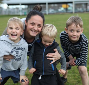 Cambridge mother Rebecca Broadbent and her three boys, Ollie (7), Archie (5) and Jack (2).
