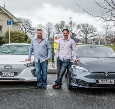 Josh Spelchan and Peter Bryant say they’re glad they made the move to electric vehicles. Photo – Michael Jeans.