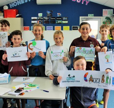 A group of students at Cambridge East School have created their own designs for a new logo for Cambridge. After reading about the new “C” logo in Cambridge News, students in Room 5 decided they would come up their own ideas.
