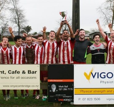 The Loaded WaiBOP Premiership – the top level of men’s competition in the region, where Cambridge lead the competition by seven points and can win it with one draw or victory from their remaining three matches; and the Soccer Shop Waikato Cup – the top knockout competition in the Waikato, for which Cambridge’s B team will contest the final next Saturday.