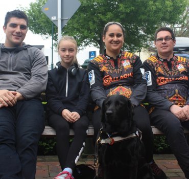 The Waterboy founder Thomas Nabbs; inline hockey player Lillian-Rose Ritchie; Ocean Stephens and Craig Armstrong were in town accompanied by JJ the guide dog to thank local sponsors of the Waterboy.