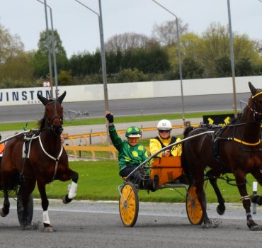 Mayor Jim Mylchreest and Florence Shearman in their sulkies, steered by drivers Nicky Chilcott and Dylan Ferguson respectively.