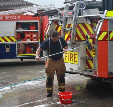 Fire trucks are washed down after each callout, keeping them in pristine condition.