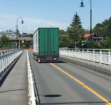 An ETL truck fell victim to the usual story of a driver following the GPS onto the high-level bridge at lunchtime on Friday. Fortunately, there was no damage to the bridge this time, however traffic had to be diverted while the driver reversed the truck back across the bridge. ETL confirmed the driver was new to the area from the Hawke’s Bay and had followed his GPS onto to the bridge. The situation was compounded by the fact that the 3m height restriction sign on the Cambridge side of the bridge had been struck by another truck the day before and flipped over the crossbeam, meaning the driver was able to drive onto the bridge unimpeded. His truck flipped the sign back the other way, which a Fulton’s worker standing nearby said had saved him the job of getting up there to fix it. Traffic was backed up down Williamson St as a result of the diversion.
