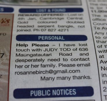Judy had once lived near Rosanne, a Nelson local, and became good friends. When she moved to Cambridge to be closer to family, the pair kept in touch over the years with annual Christmas card catch-ups.