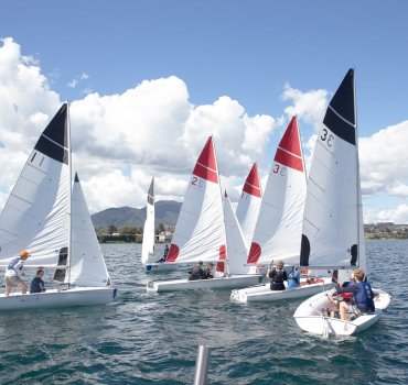 A team of eight young sailors competed for the elusive Burgess Cup trophy at Hamilton’s Lake Rotoroa on Friday March 16, finishing in second place once again. It was still an excellent result, having lost by six points to Hamilton Boy’s High School’s team of thirteen sailors. It was also the first regatta for Year 9 newcomers Mikayla and Heather Anne Knowles.