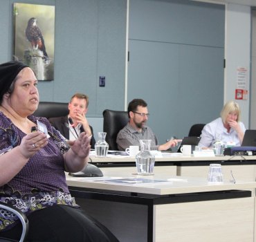 Waipa District Council held a public meeting in early December to hear verbal submissions on the proposed shared water management company. Katherine Pioletti (pictured, left) opposed the idea. Most public submissions that day supported forming the shared water company.