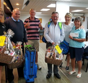 Winners and organisers of the Cambridge Lifeskills golf tournament: Susan Keesing and Roger McGlade, John Bullick (Chairman Cambridge LifeSkills) Ric Keesing, Yvonne Scown (fundraiser extraordinaire) and Sheryl McGlade.