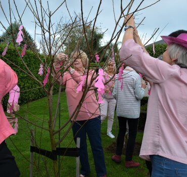 The two-time survivor of breast cancer hosted her first Pink Ribbon Breakfast, joined by family and a group of 16 women who had either faced the disease themselves, or known others who had. As well as enjoying a feast prepared primarily by the menfolk in the family, guests acknowledged those touched by breast cancer by writing their names on pink card cut-outs and hanging them on two bare cherry trees fringing Ruth’s patio.