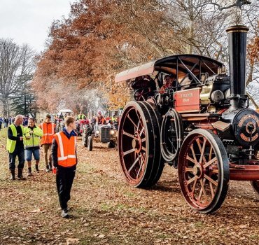 The event showcased fifty tractors, one for each year of Fieldays, dating from the 1930s to 1960s. They included a very rare find – a single cylinder Lanz Bulldog that starts with a shotgun shell, and a 1904 Fowler steam power traction engine used to harvest grain and power threshing machines in early agricultural New Zealand.
