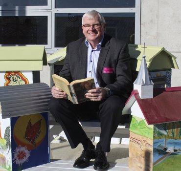 Cr Rob McGuire checks out a book out from one of the little libraries, when they were presented to council staff at Spring Hill Corrections Facility last week.