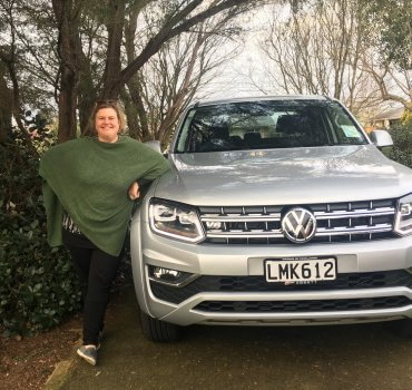 Claire Castle with the Volkswagen Amarok V6 Aventura, which she did not want to give back to the dealership. Photo – Ann Huston.