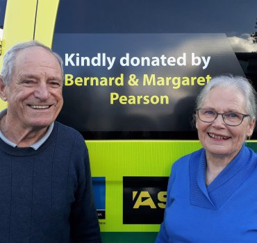Local philanthopists, Margaret and Bernard Pearson, with the St John ambulance they helped fund for Cambridge in 2016.