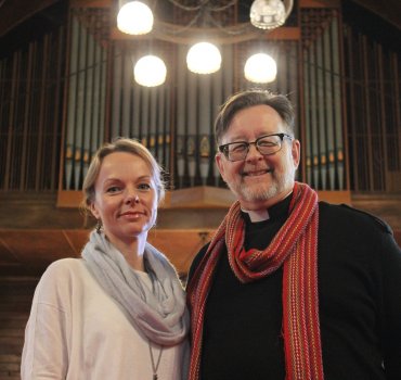 Jacqueline Stephenson and Reverend Malcolm French, pictured with the iconic St Andrews Church organ.