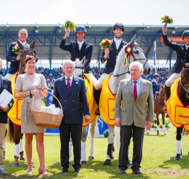 Cambridge’s Sir Mark Todd and Matangi’s Clarke Johnstone joined the New Zealand eventing team to notch their first-ever Nations’ Cup win in the CHIO Aachen in Germany recently, making history as just the second team ever to beat the Germans on their home ground.