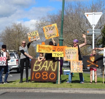 Cambridge was among 40 sites throughout the country that saw anti-1080 protestors calling on the government to put a stop to use of the controversial poison.