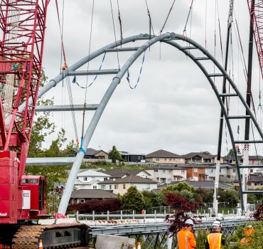 Some of New Zealand’s biggest cranes have been operating in town to install the brand new wastewater pipe bridge.