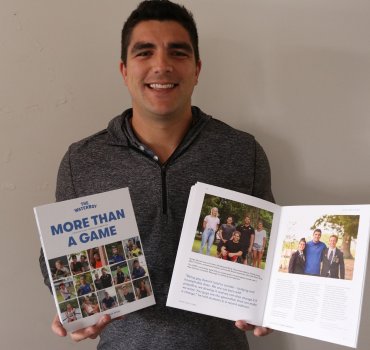 Thomas Nabbs, creator of The Waterboy charity with More Than a Game, pictured with the new coffee table book that had its official launch in Cambridge this week.