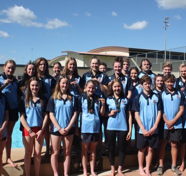 The St Peter’s Swim Club team show off their 41-medal haul.