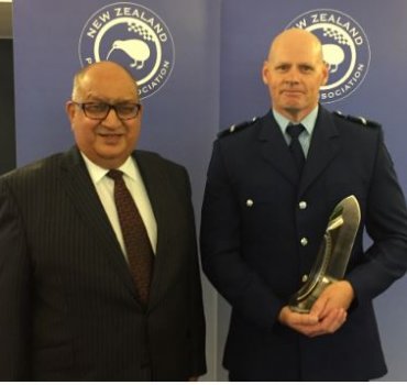 Senior constable Scott Quate (right) was presented with the Police Association’s Bravery Award by former Governor General, Sir Anand Satyanand.